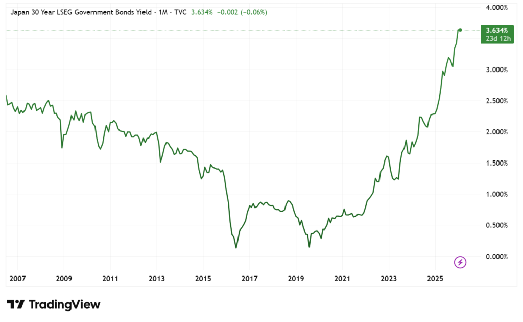 On 20 January 2026, Japan’s government bond market entered acute stress. Thirty-year JGB yield surged more than 30 basis points to 3.91%, the highest level in 27 years, following fiscal rhetoric from Prime Minister Sanae Takaichi that intensified concerns over debt sustainability. Japan’s debt-to-GDP ratio, already exceeding 250%, became the focal point of global bond markets.