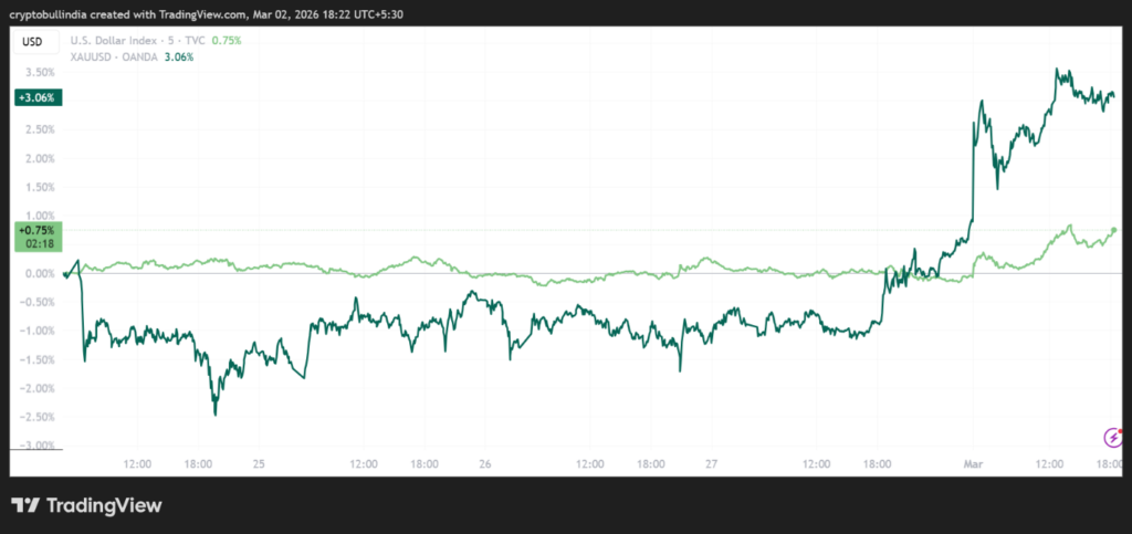 Figure 2: Gold Sees Growth By 3% and US Dollar By 0.73% In Last 5 Days